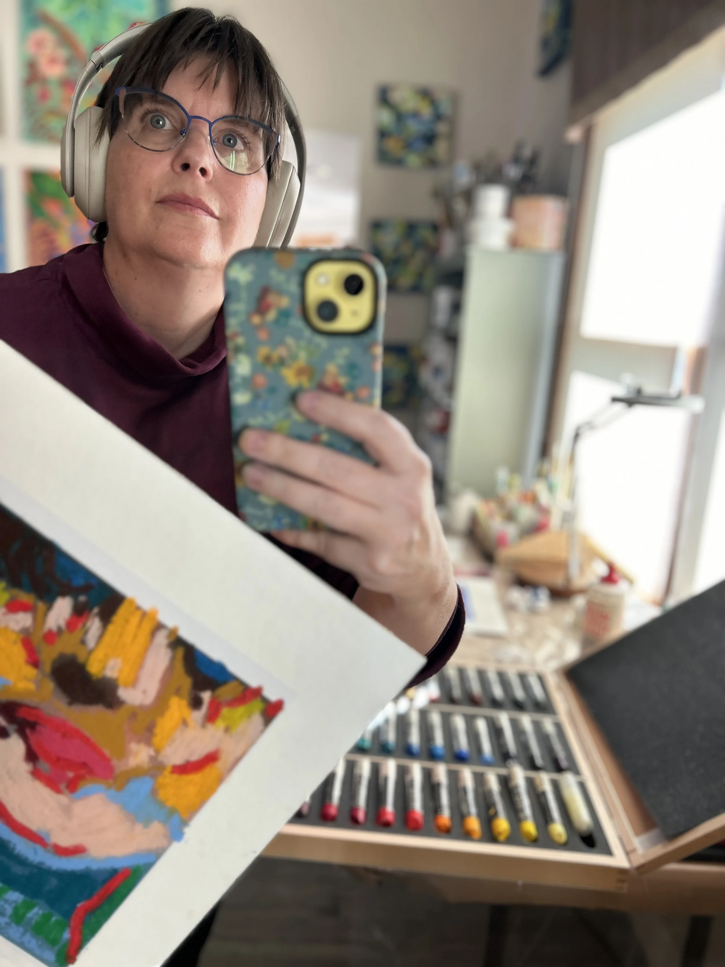 I’m Angela Meijer, and I make art in Lake Country, Wisconsin. There is always something personal at the heart of my paintings, memories, gestures, and light coming together in layered surfaces. I mix photography, collage, and vibrant color, building each piece until it feels alive, like a fragment of my own story told in paint.